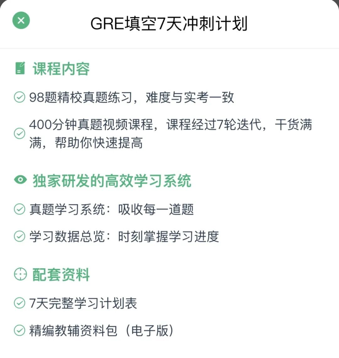 扫描下方绿色二维码,选择“GRE-冲刺计划”了解更多: