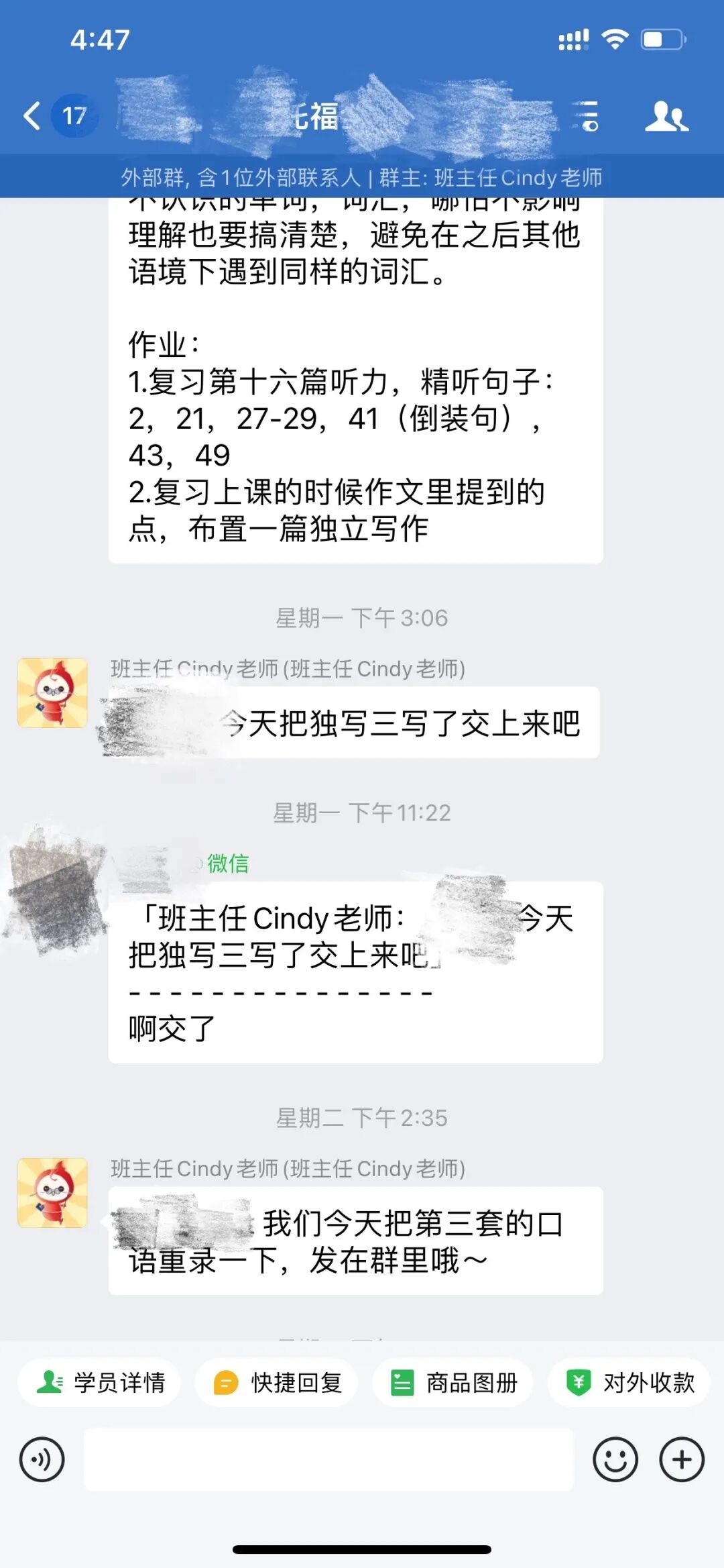 同时,班主任也会在群内监督学习进度、作业完成进度,并提醒督促。