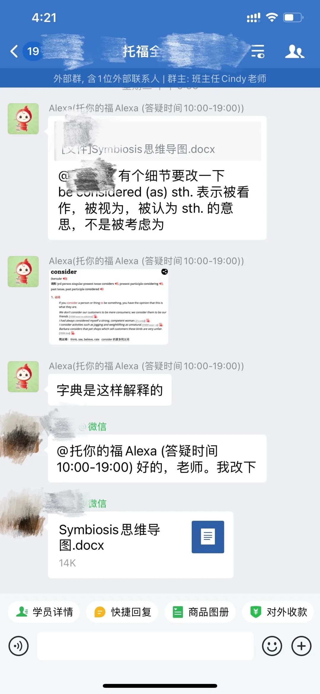 专属个人学习群,群里只有各科任课老师+督导老师+你。你在群内可以直接@老师提问,询问和托福备考相关的问题。