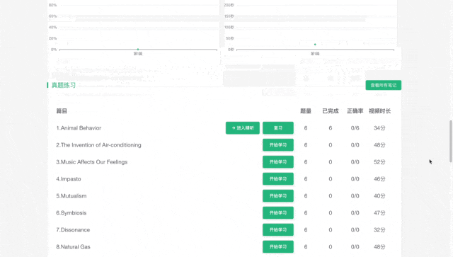 因为阅读和听力是输入项,系统里能获取更多的数据,因此下面还有这两科的学习数据。