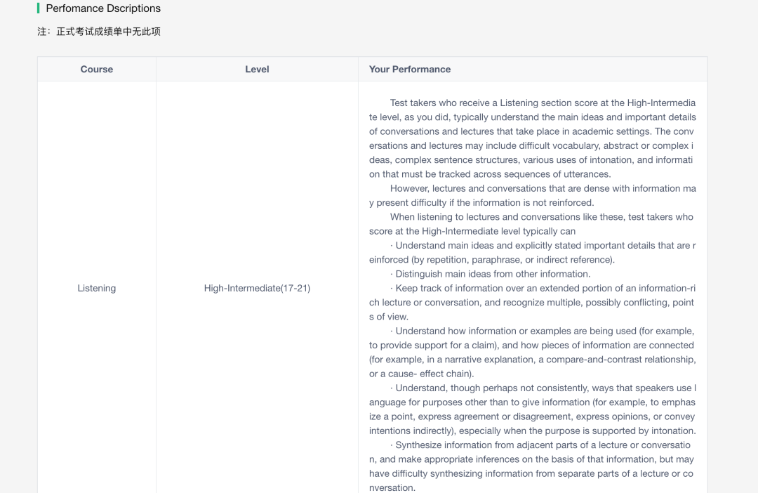 分数下面是对你的成绩的解释,这是现在官方成绩单中没有的: