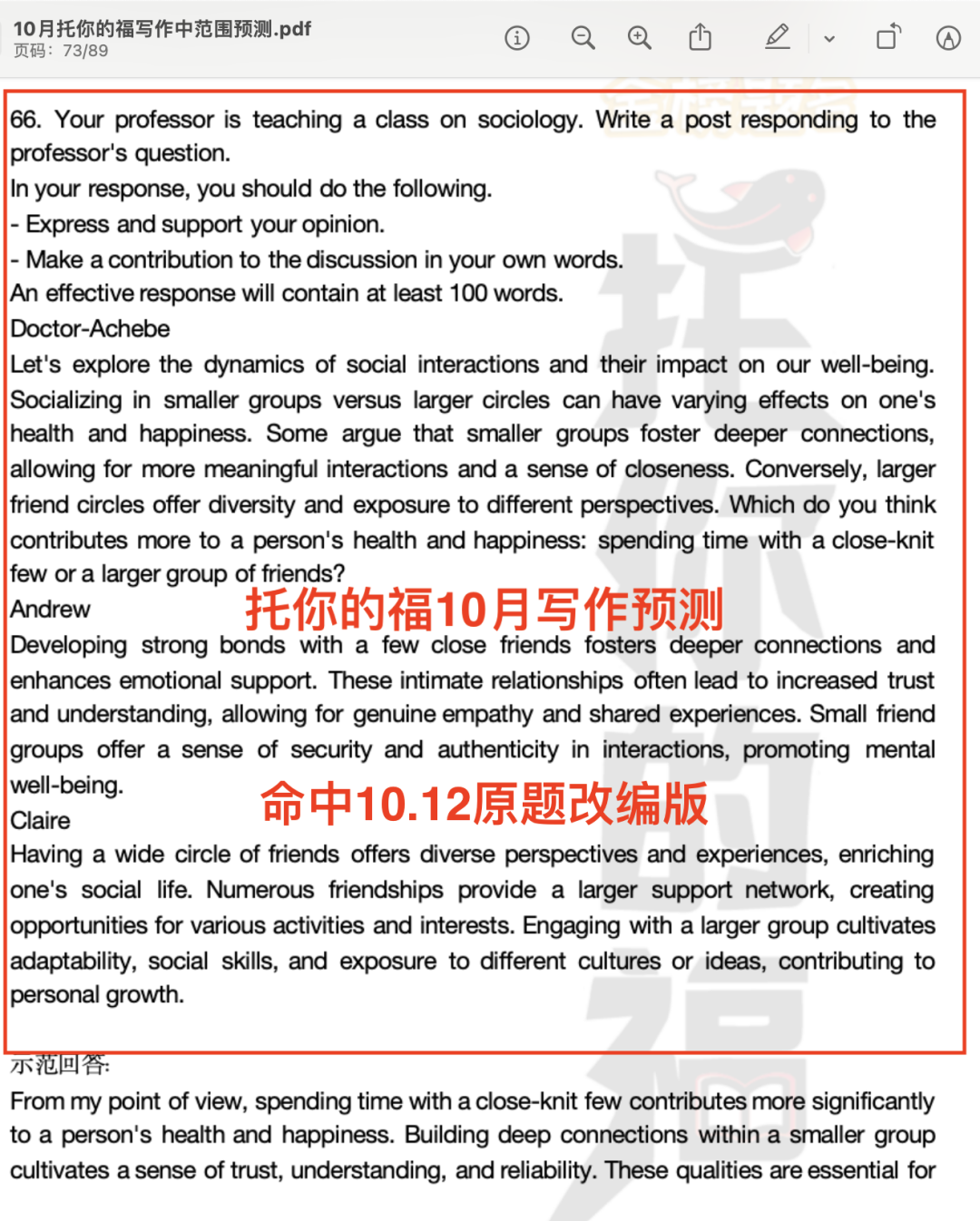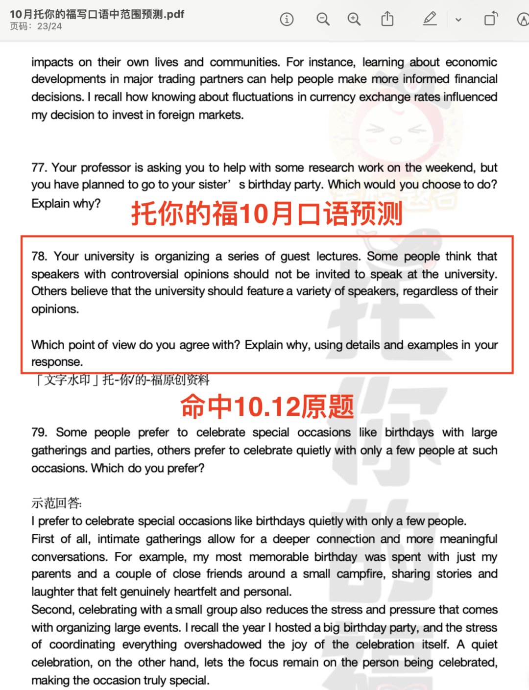 托你的福10月预测命中原题改编(题目内容一模一样,范文可以直接用)!